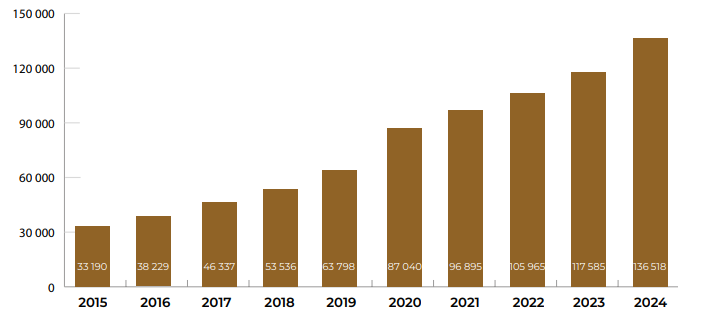 | Total Général | 136 518 | 100,00 | 117 585 | 100,00 | 16,10% |